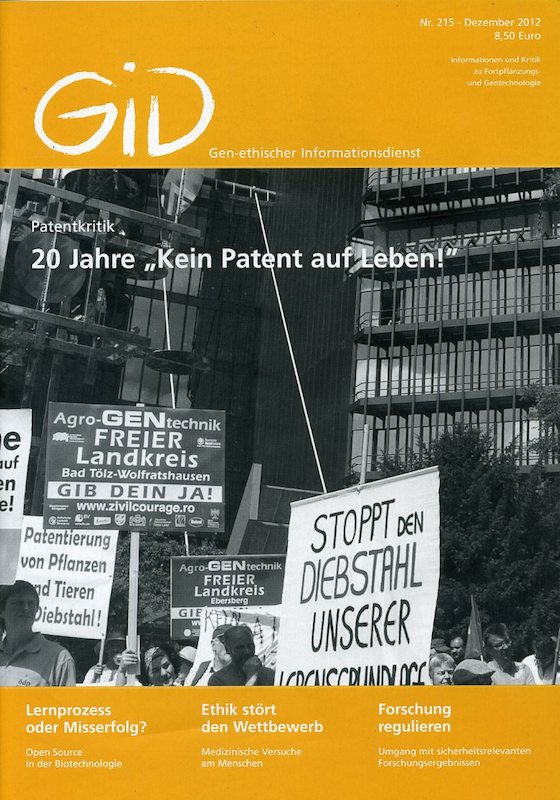Die Gründung der Initiative „Kein Patent auf Leben!" war - im deutschsprachigen Raum, vielleicht auch in ganz Europa - der Beginn der systematischen Beobachtung und Kritik der Patentierungspraxis in den Bereichen Bio- und Gentechnologie, Medizin und Landwirtschaft. Nicht zuletzt aus diesem Grund steht „Kein Patent auf Leben!" im Zentrum dieses GID-Titelthemas. Daneben gab es aber auch andere Versuche der Auseinandersetzung mit der Patentierung von Genen, Geweben, Pflanzen, Tieren und so weiter. Auch diese sollen hier ihren Platz finden.